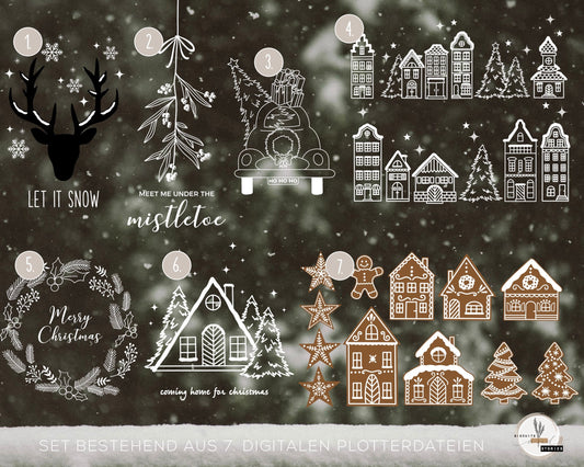 Plotterdatei SVG - Winterlandschaft & Lebkuchendorf Set
