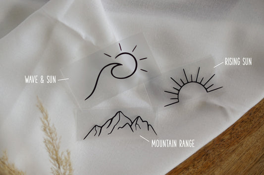 Bügelbild 3er Set - Berge Sonne Welle