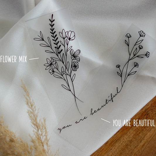 Bügelbild 2er Set - Blumenstrauß & Schriftzug "you are beautiful"