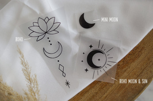 Bügelbild 3er Set - Mond Sonne Lotusblume