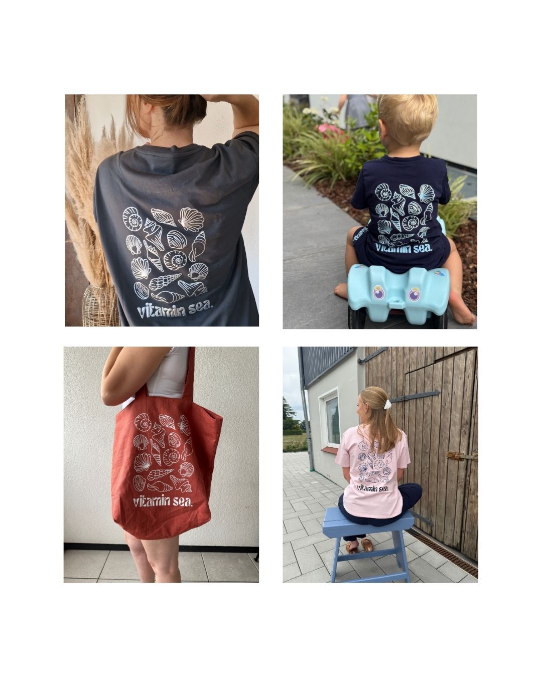 Tauche ein in die kreativen Umsetzungen des Vitamin Sea Designs und entdecke, wie vielseitig Sommerfeeling aussehen kann. Von edlem Silberglanz über pastellige Flieder-Töne bis hin zu lässigen Kids Outfits – jede Kreation bringt den Spirit des Meeres auf ihre ganz eigene Art zum Strahlen. So entstehen individuelle Lieblingsstücke, die Lust auf Sonne, Strand und Meer machen.