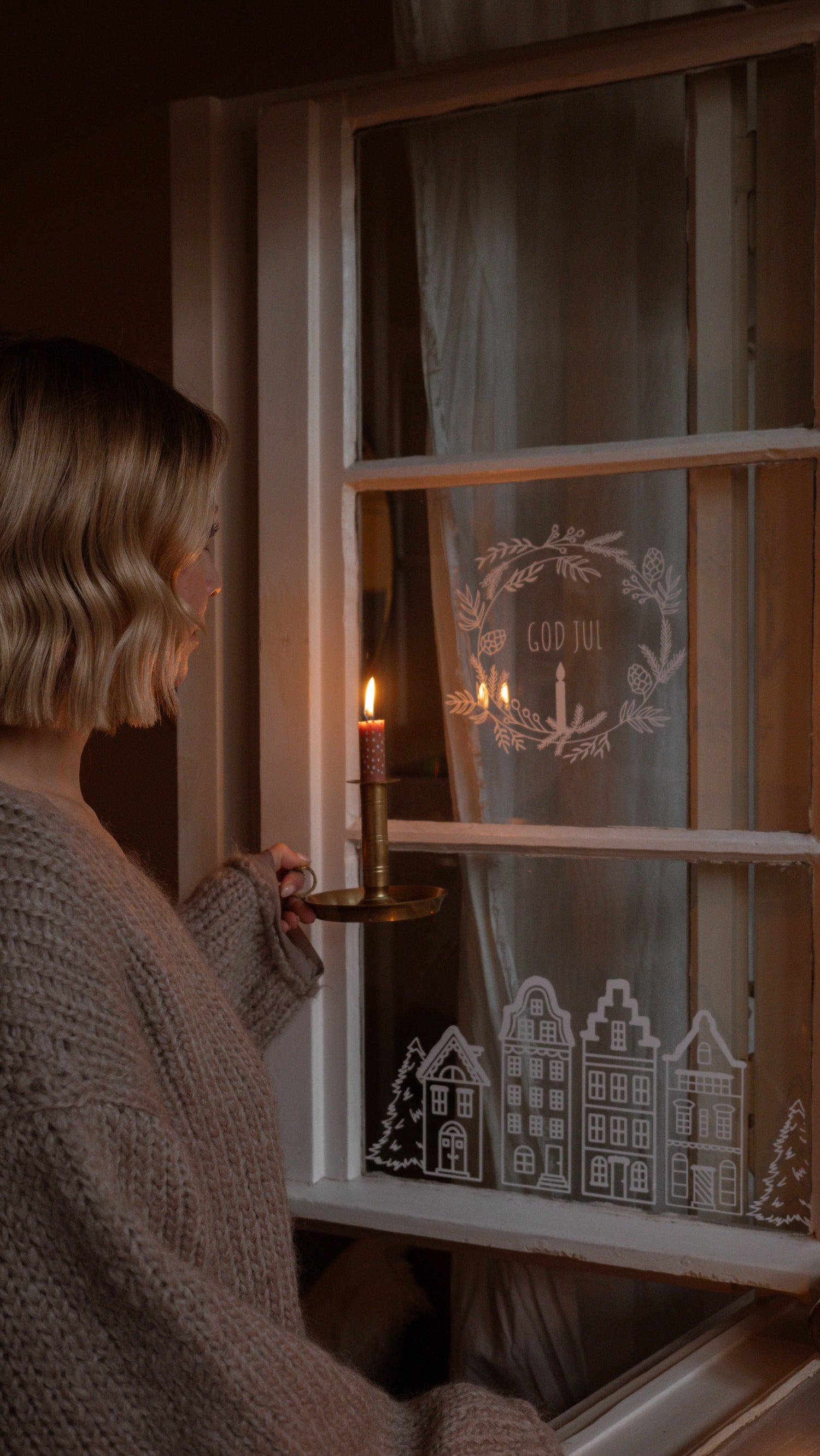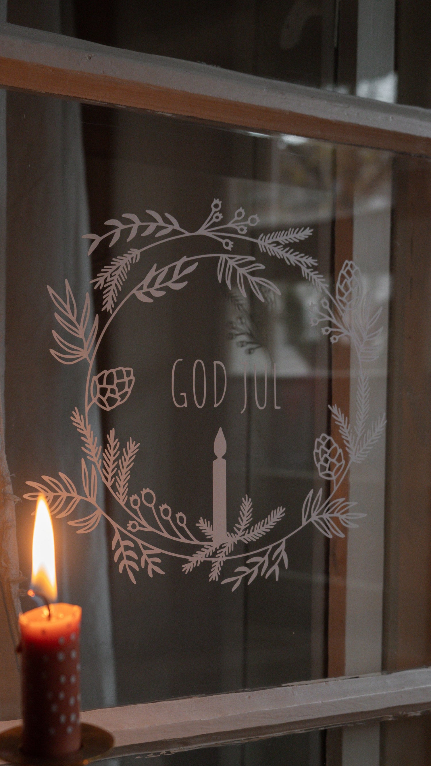 Als die Idee einer Zusammenarbeit für ein weihnachtliches Fensterbild entstand, war eines sofort klar - die Details sollen es zu etwas ganz Besonderem machen! Ein dezenter, minimalistischer Weihnachtskranz mit einer Kerze und dem Schriftzug "God Jul" rundeten das Design perfekt ab.